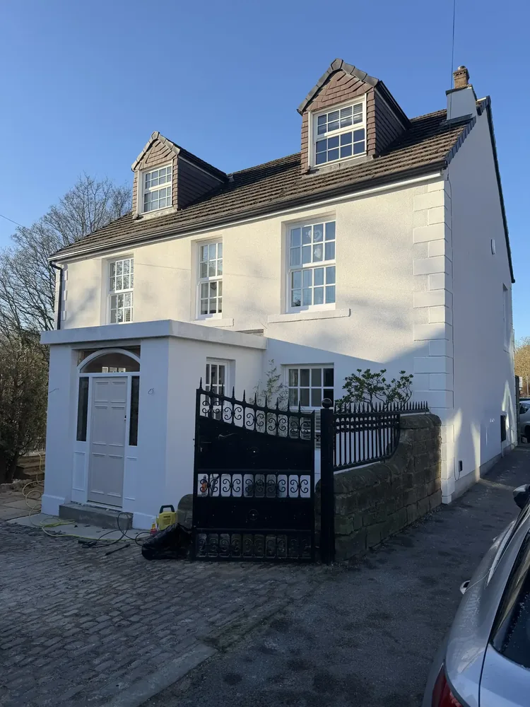 Silicone render, monocouche, EWI & internal plastering across Sheffield. 25-year manufacturer warranty. No deposit — pay only when you're completely satisfied.